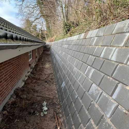 Jeg udfører alle typer mindre graveopgaver – fra udgravning til fliser, fundamenter og støttemure til afretning af jord og etablering af dræn.