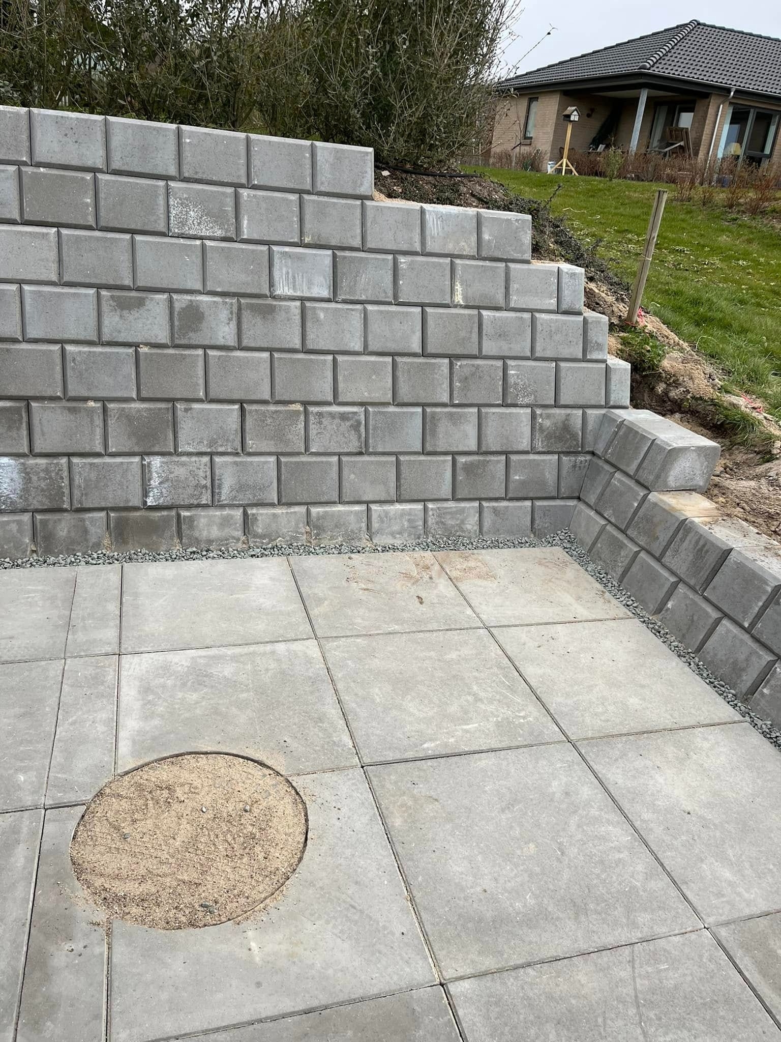 - Opbygning med betonblokke eller natursten